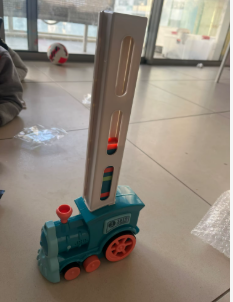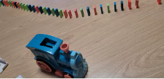 Du skal blot fylde opladeren med dominoerne, indsætte den i køretøjet og tænde det: det placerer dominoerne automatisk på række.